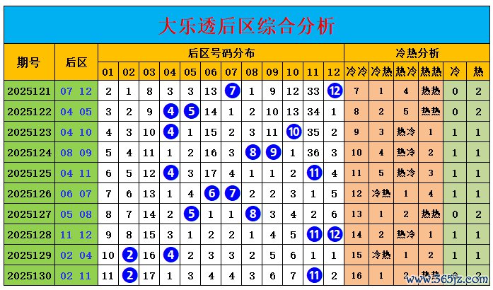 上期后区开出号码02、11,为热热组合。最近10期后区冷热比6:14,热码合座走势稍热,最近10期后区冷冷组合开出0期,冷热组合开出2期,热冷组合开出4期,热热组合开出4期。